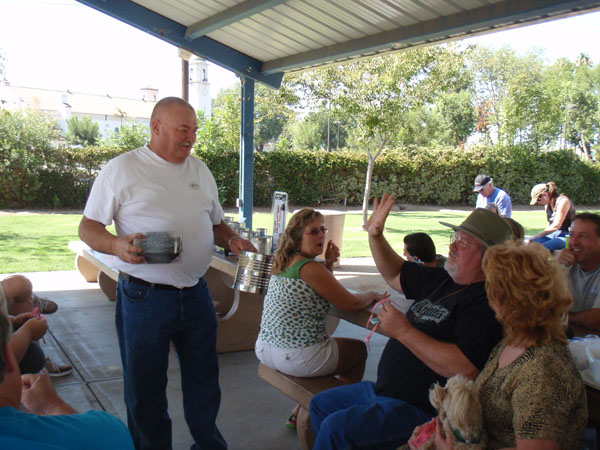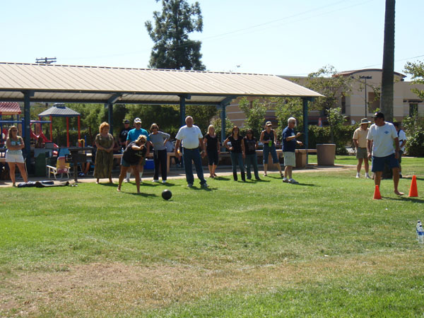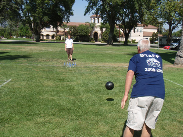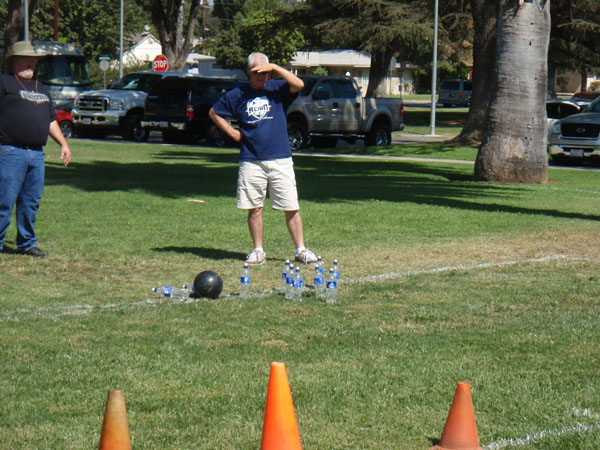 John Cole brought a bowling ball and we re-invented the sport of lawn bowling for raffle tickets. |