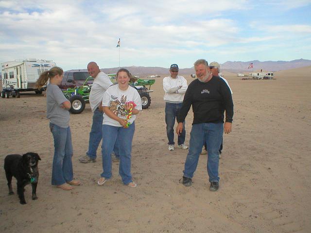 In a moment of glory for the Chevy fans in the Cole-Kastle vehicular debates, Jim towed John's F-150 out on the way home with the buggy box still attached. There is some history here, which includes a sticker n Melissa's truck that defines Ford as "made to pull Chevys". This time it was the other way around... |