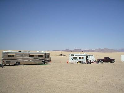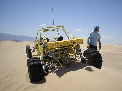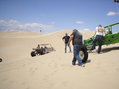 Jim found that he had broken a shock, IN THE TRAILER on the way to the dunes. There is a first time for everything. |