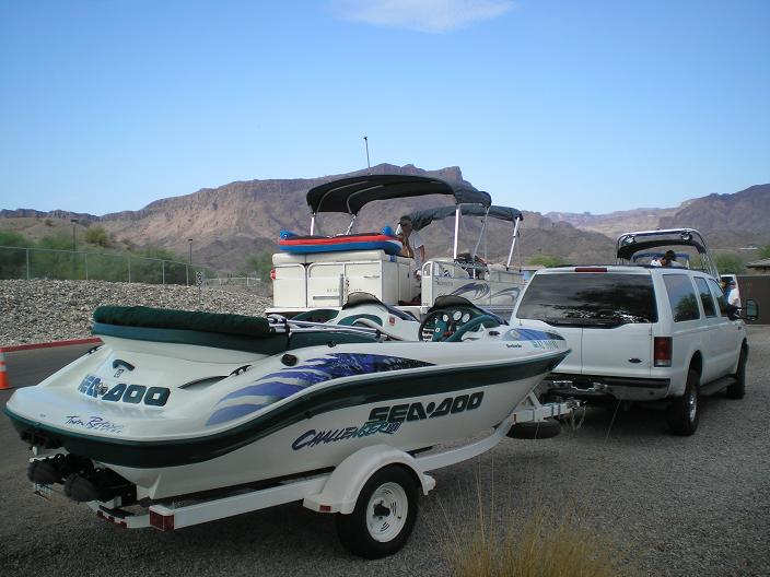 P.J. and Melissa got to use their new Excursion for the first time on this trip. Also, Don and Shirley let the Kastles borrow their boat so they were riding in style. |