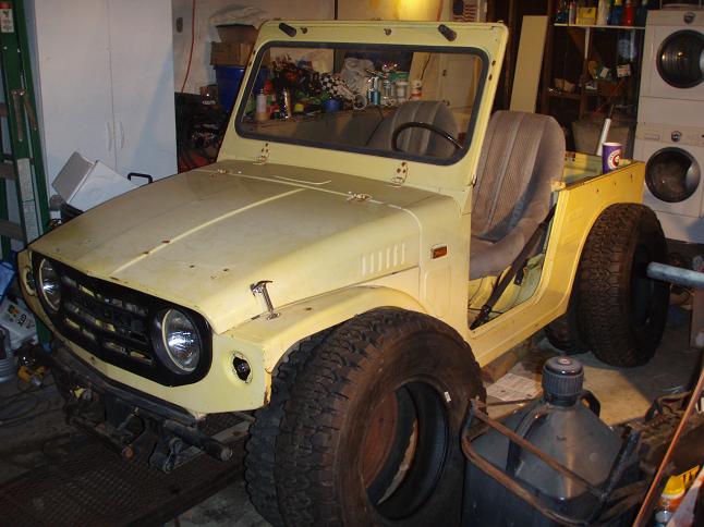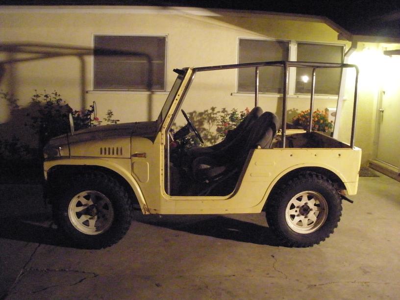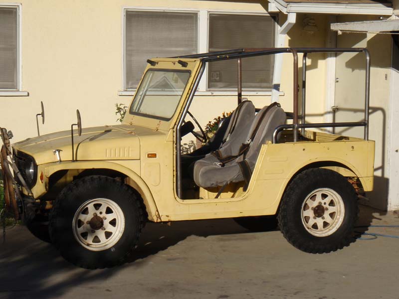 A different project: P.J. and Melissa's 1972 Suzuki LJ10 This Valentine's Day Melissa bought P.J. this fun little Suzuki LJ10. It is a 1972, and has a two cylinder two stroke motor. With help from John we were able to get it running and took it home from the high school in the back of P.J.'s truck. Now it will be an ongoing project for us, and eventually will become a neat little Rhino / Ranger substitute with license plates. Check back for more pictures as the project progresses. |