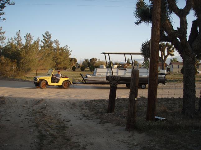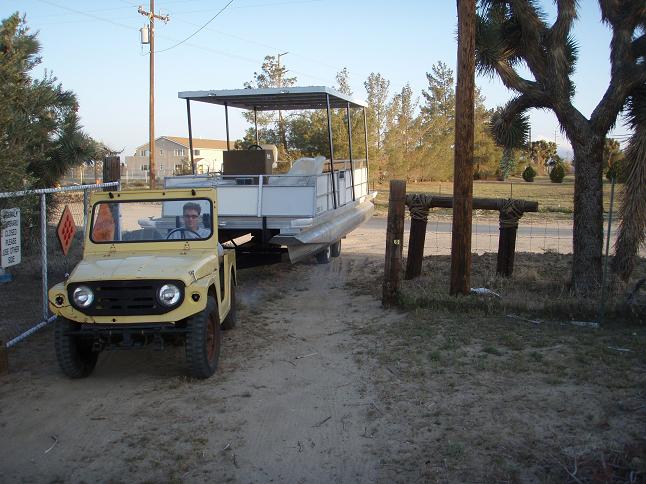 4/6/08: This Sunday we took the LJ up to Phelan. We all got to drive it around at John and Anna's, and it did great. I even put the LJ to work moving our old pontoon boat around. What a fun little jeep. |