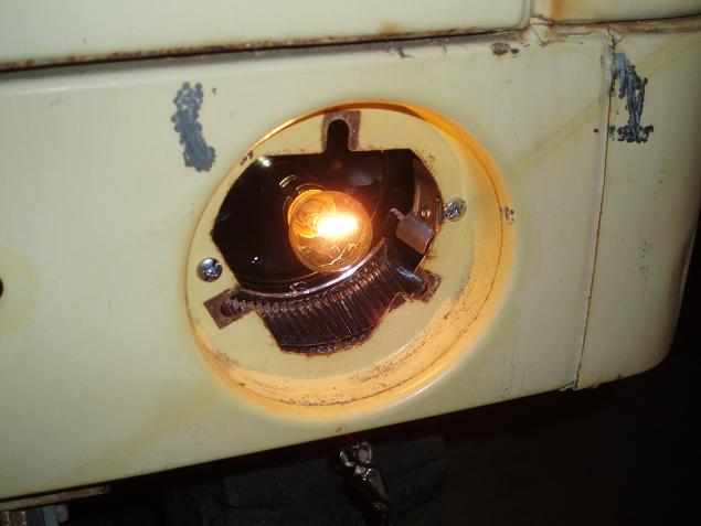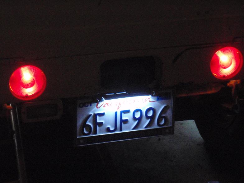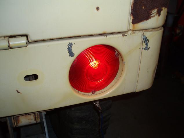 3/7/08: Here are some trailer lights we found at AutoZone that can mount in front of the stock holes so they end up nice and recessed in the body. All four rear lights, both side turn signals, and both front turn signals are in and working with the running lights and turn signals. |