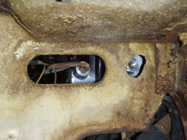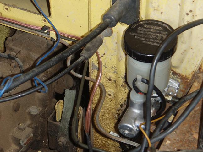 3/15/08: This weekend's project was replacing the stock master cylinder with one from a Samurai. The old one was single circuit, and was leaking from every possible place. With the samurai one, the front and rear brakes will be separate, which required adding a brake line from the master cylinder to the junction block where the rear brakes used to split off. The brake light switch was also relocated to this junction block to fill the extra hole. |