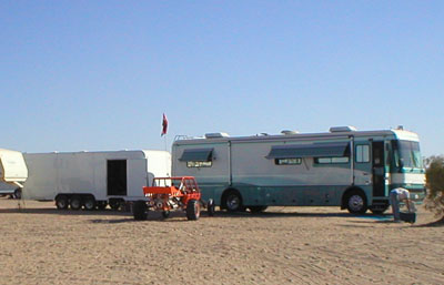 Mark and Tonya Rhoades brought this nice addition to the November club meeting. With that many slide outs, we could have had the entire meeting inside. They made their new motorhome's first trip to the sand over Thanksgiving. |