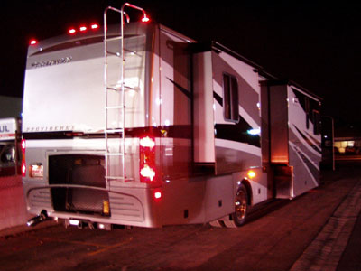 The Hagen family upgraded their motorhome as well, and joined the growing group of diesel pushers with this rig. They also had their enclosed trailer re-sided to match. |