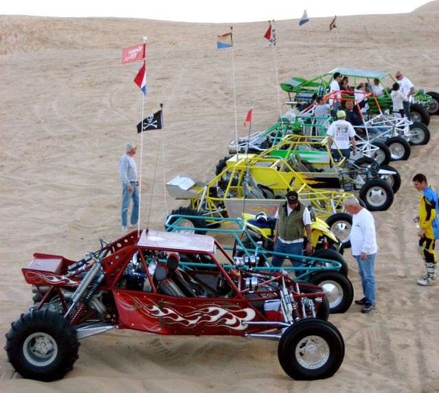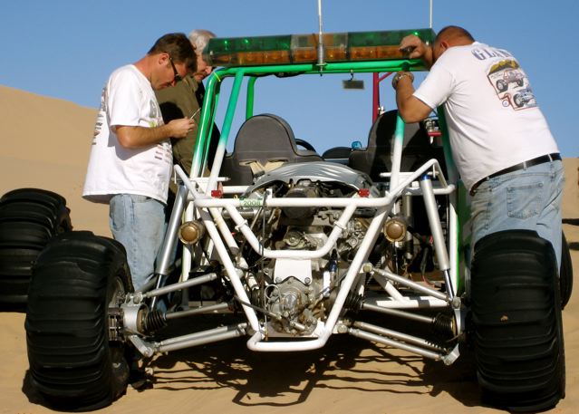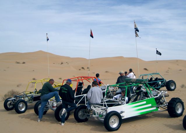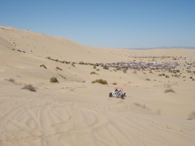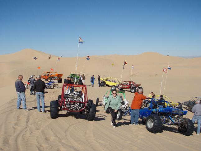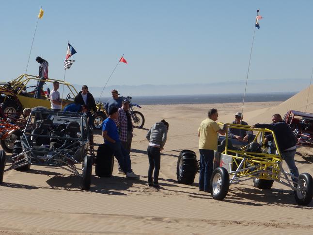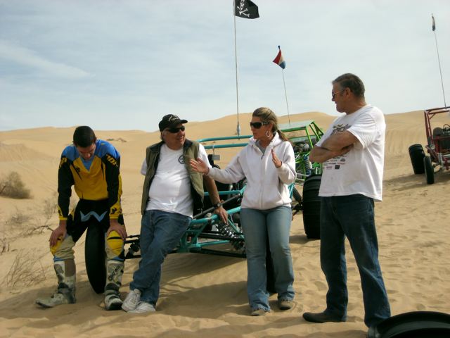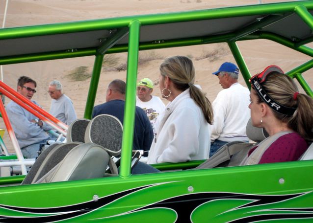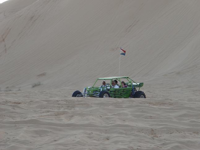 | Here's Dave Huggard with a full car at hill 4. He is always very nice about giving rides in this awesome car to get more people out in the dunes. |