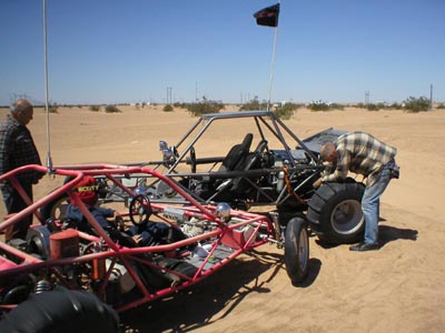 Jim hit a berm track and broke a shock and rod end, but drove back to camp. What a club! |