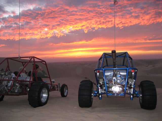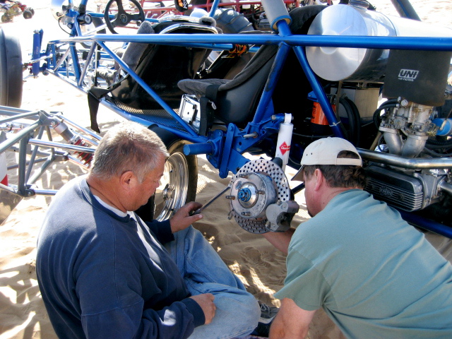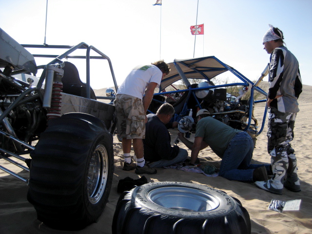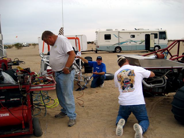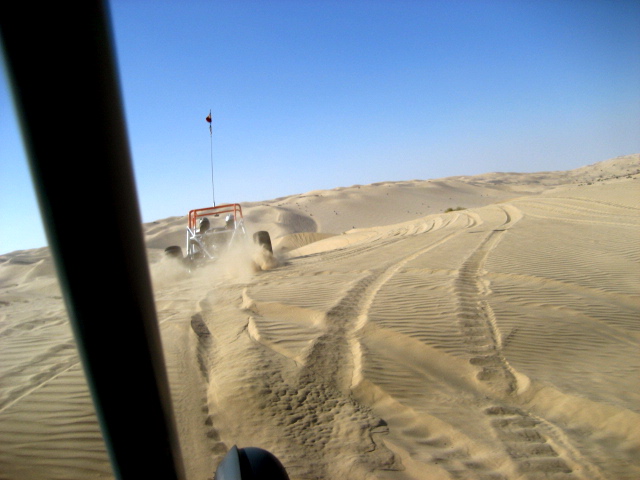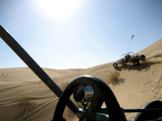 What you don't want to see coming around a bowl. Doug Becker hit a hole / sand wall in a bowl and rolled his car. Fortunately he was ok except for some stitches, and the car only lost a whip, a mirror, and a little oil. Everybody helped out, and Doug rode in other cars later in the trip. This is another case where it is great to be riding with this group. |