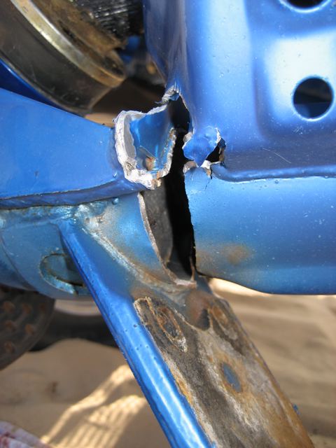 Oops, Steve's trailing arm gave in to the loads of a good ride, so how did they get it back to camp? |